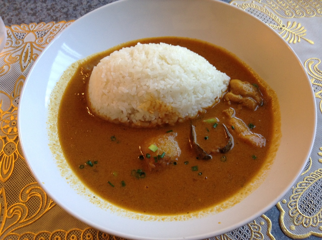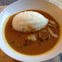 カレーは、チキン、野菜が入った辛さの少ないカレーでした。インドカレーとしては味の深みが物足りない感じでした。