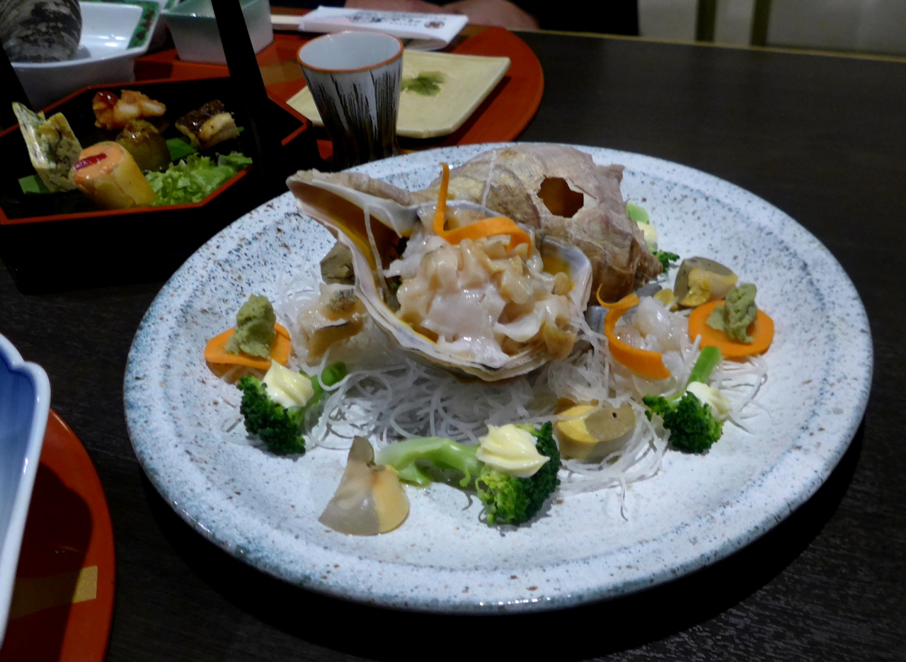 つぶ貝,ホッキ貝がおいしかった.特にホッキ貝の炙り焼きがおいしい.金目鯛などもおいしく,まつたけの土瓶蒸しもある.牛肉も少なかったがおいしかった.貝のおいしい店だ,苫小牧名産だ.プライベートで来てもいい店だ.このあたりに来たらぜひまた来たい!