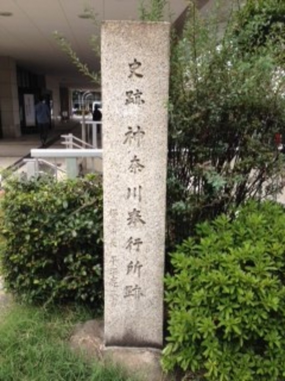 桜木町駅から紅葉坂を登り青少年センターの敷地内にある。江戸時代末期に横浜が開港したので、奉行所が置かれたとのこと。その後、裁判所に分かれたりして、明治3年に神奈川県県庁が設置されるまで、ここが行政の中心地だったようだ。今は青少年行政の中心地だ。