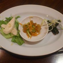 セット内容は、前菜(ピクルスみたいなの、蒸しとりなど)、小籠包、ラーメン、杏仁豆腐でした。1300円くらいでお腹もいっぱいになり満足です。