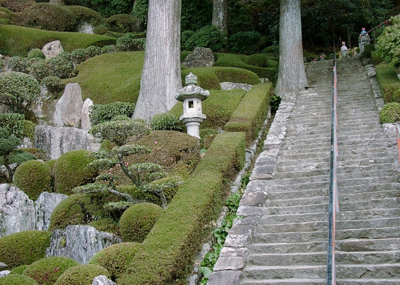 仁王門から本堂までは長い石段を登ります。このお寺の見せどころである石段の横に広がる広大な庭園は良く手入れもされた見ごたえのある庭園です。