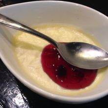 事前に食券を預かってくれるので、席についてからはスムーズです。女性用には、麺少なめの代わりにデザートでパンナコッタがつきます。