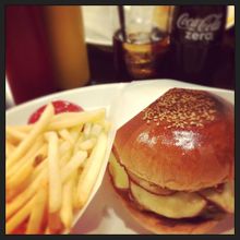 ハンバーガーのお肉は注文受けてから焼くのでジューシーでおいしいです。とってもボリューミーです。お腹がはちきれそうになります。