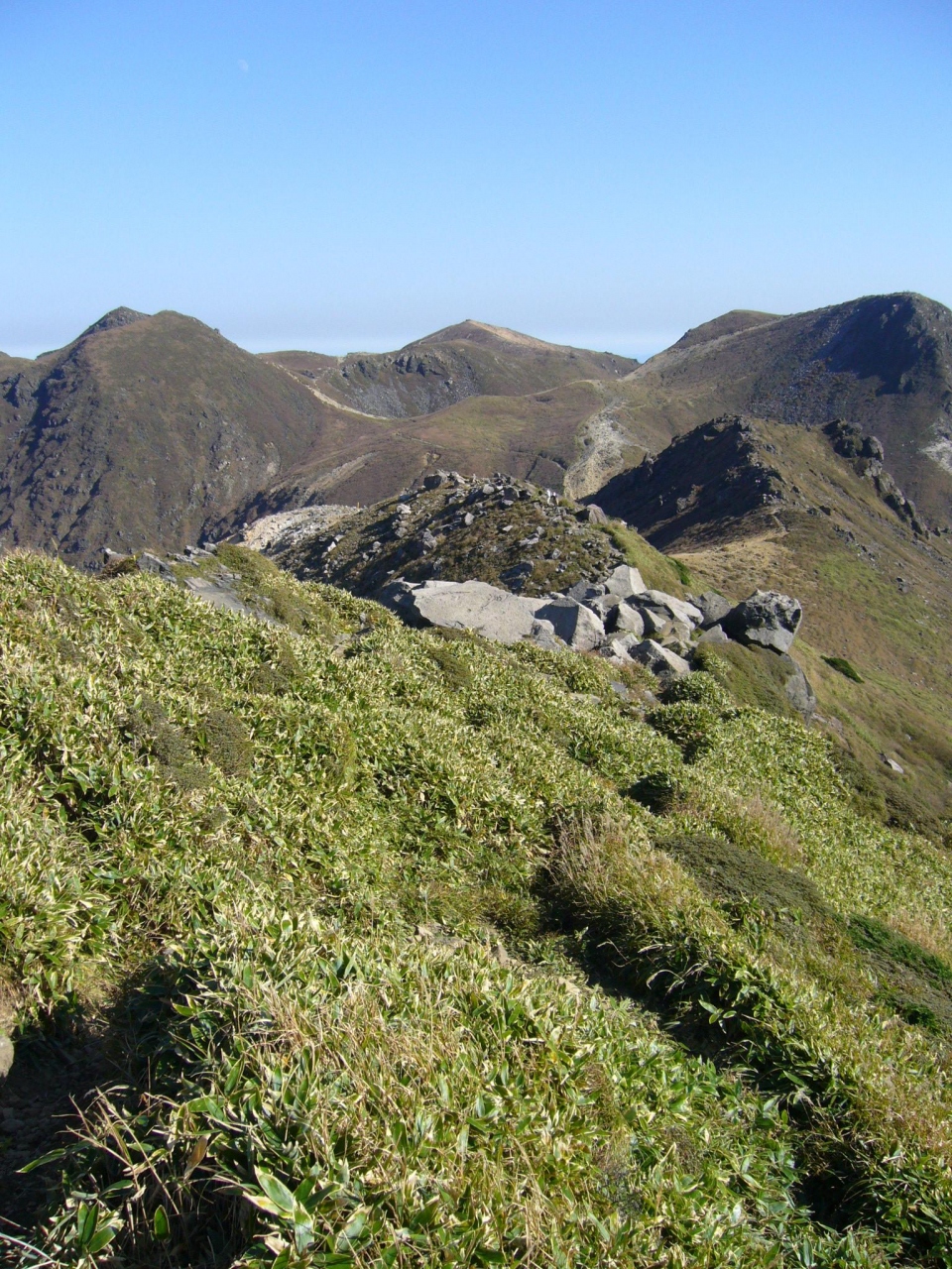 北面は硫黄山へと続く荒々しい火山の姿 星生山