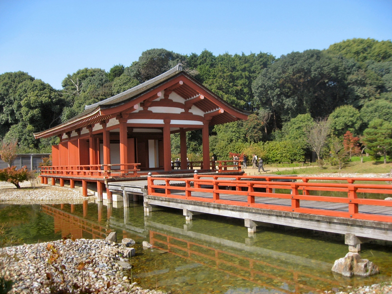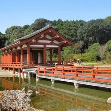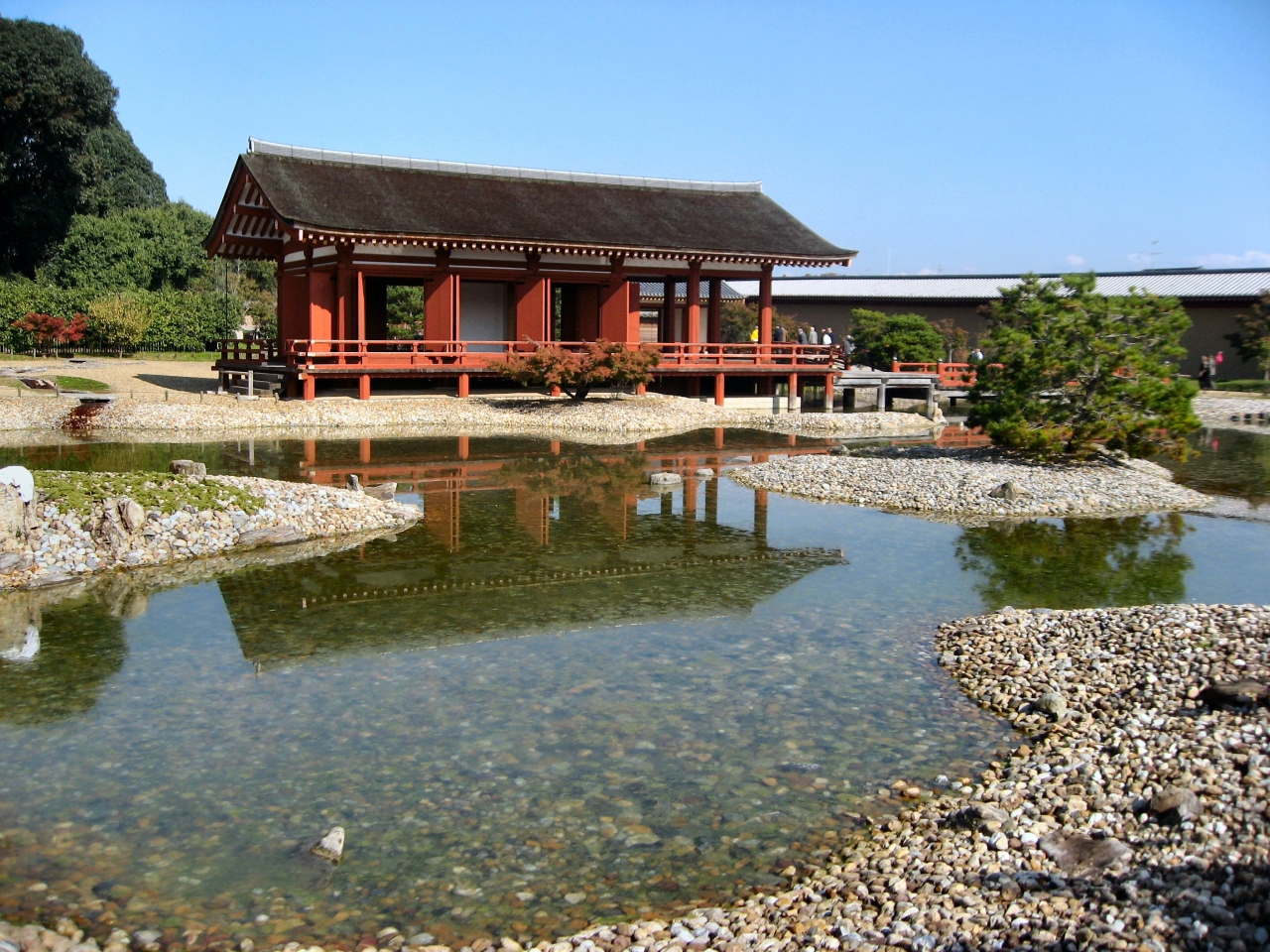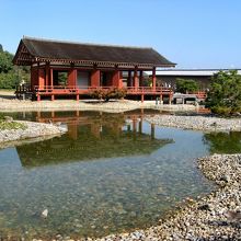 朱雀門から徒歩10分ぐらいの所に「東院庭園」があります。東院庭園は東西60m、南北60mでそんなに広くはありませんがこの範囲に池や正殿があり、池には船を浮かべて宴会や儀式を催していたそうです。朱雀門見学の際には立ち寄って観るのもいいです。