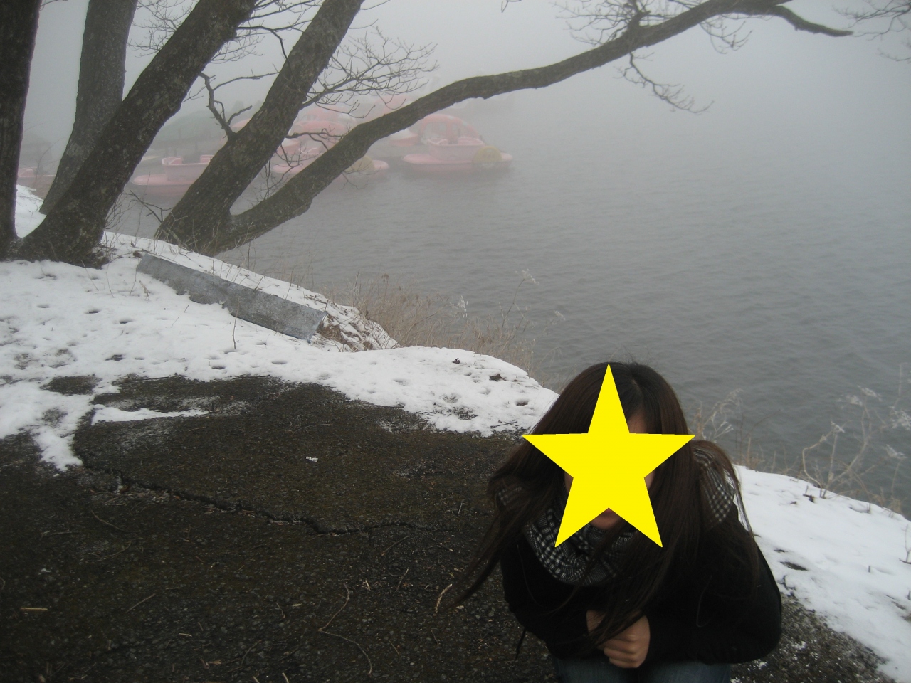 時期は3下旬でしたが、湖畔にはまだ雪が残っており、極寒でした。