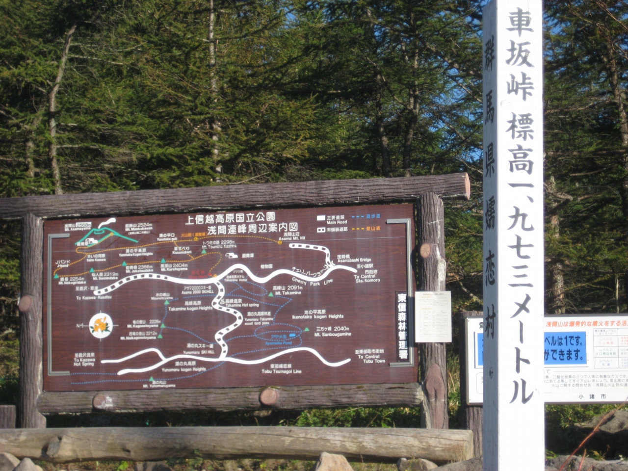 浅間山登山後、黒斑山を縦走して車坂峠に下山しました。この一帯は緑も多く散策ルートもあります。横には高峰高原ビジターセンターがあり、正面には高峰高原ホテルもあるので日帰り入浴も可能です。ここから小諸駅に行くバスもでています