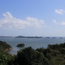 仙石線松島海岸駅から徒歩で行きました。片道30分ほどです。車なら5分ほどだと思いますが、駐車場から展望台までは階段を上ります。展望台からは扇を広げたような形で松島湾を望むことができます。四大観の中では一番行きやすい所ではないでしょうか。