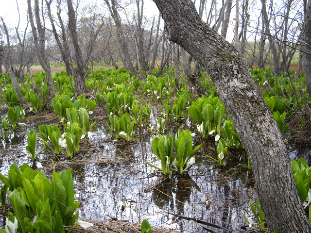 水芭蕉見物に友人と出かけました。札幌から車で30分くらいのところに、こんなにも多くの水芭蕉が群生しているところがあると知りませんでした。石狩側のわきで水も豊富で、木道が整備され、大変美しい景観でした。