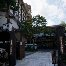 石段の中央を「小間口」とよばれる温泉が流れる配水路があり、石段街沿いの温泉宿に湯を運んでいます。