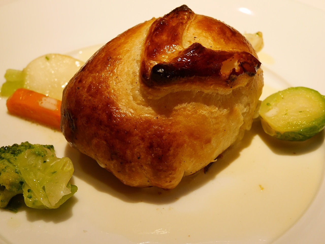 サクサクのパイの中にふっくらと蒸されたマダイと野菜がたっぷりの美味しいパイ包みでした。