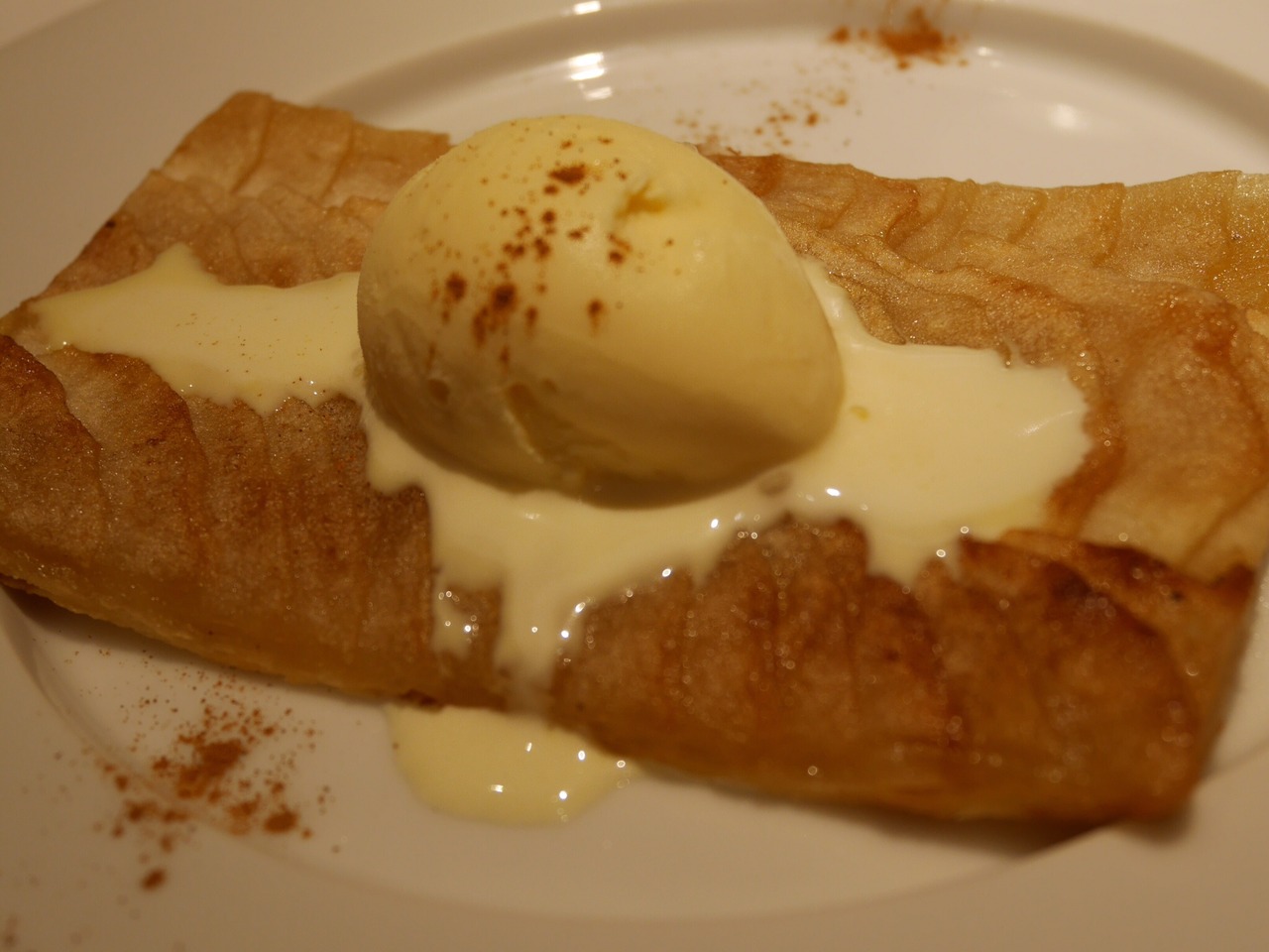 定番系のデザートですが、パイがしっかりサクサクで、冷たいアイスクリームとマッチしてました。