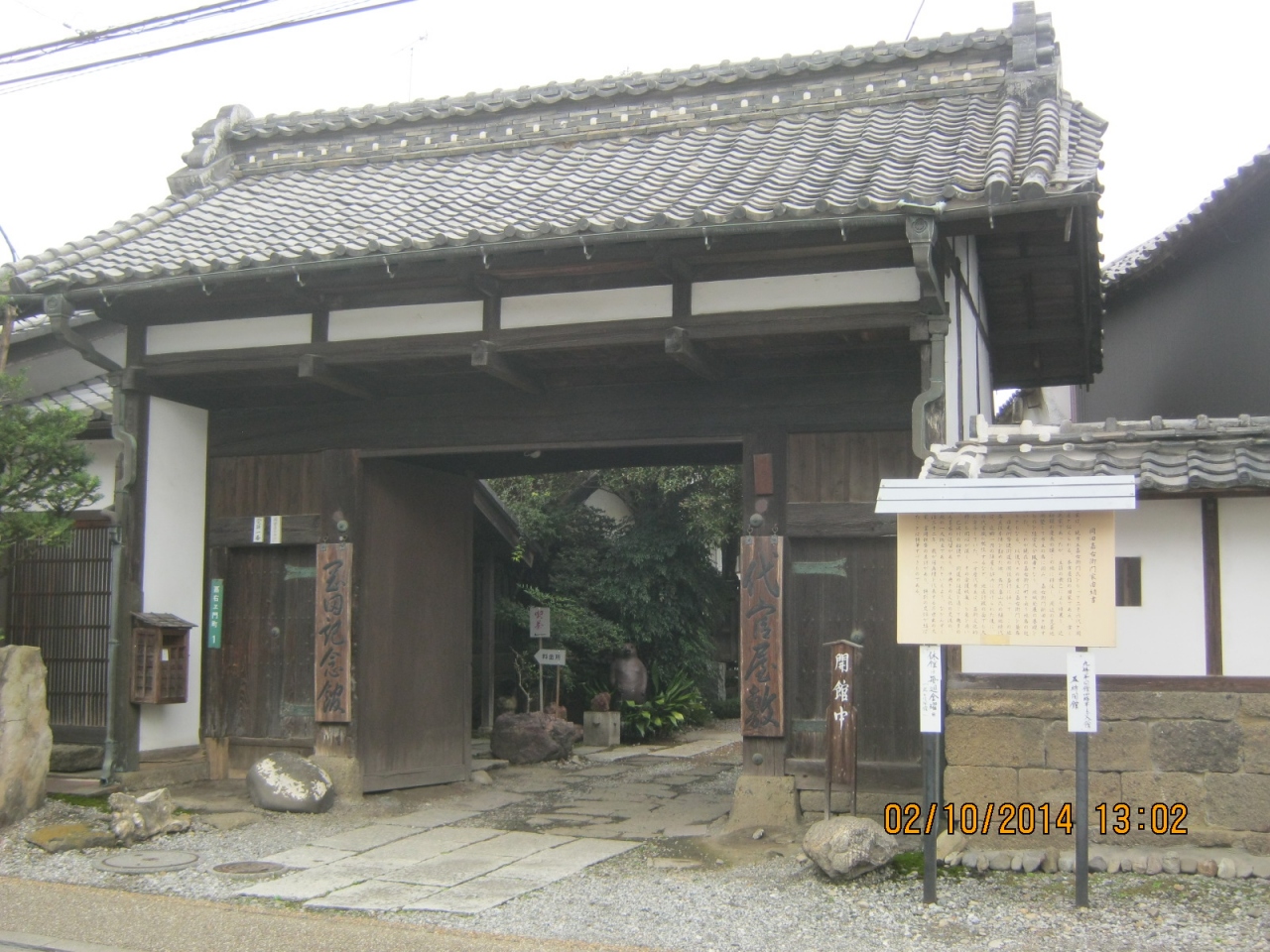 栃木駅北口から北へ約30分程度です。例幣使街道に面して建てられています。550年以上の歴史ももった豪族です。江戸時代には畠山氏のの陣屋になっています。広大な敷地内にある土蔵に岡田家の家宝が展示されています。