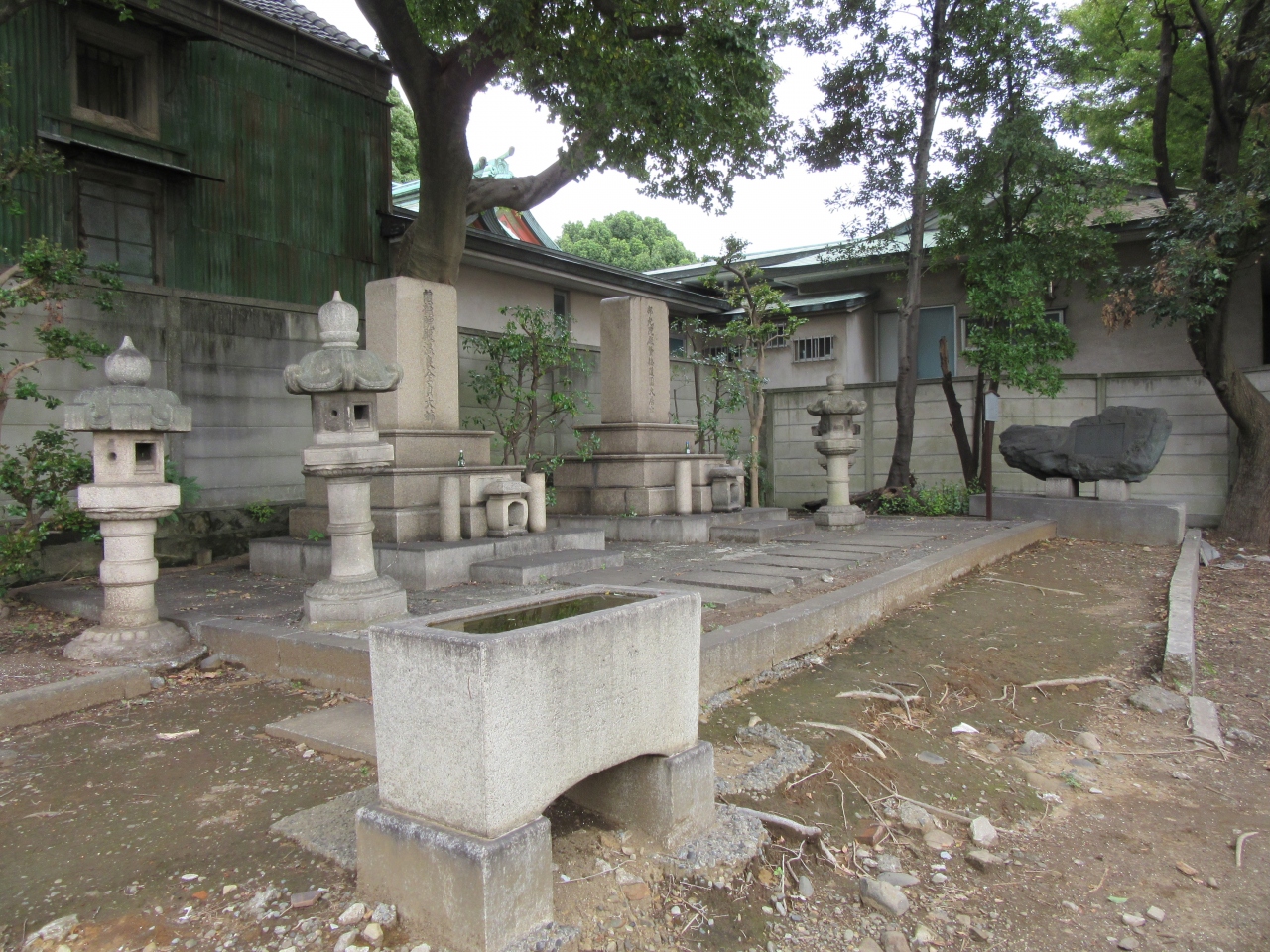 品川神社拝殿横で板垣退助の墓の案内板見つけ・・この裏手にと誘われました。