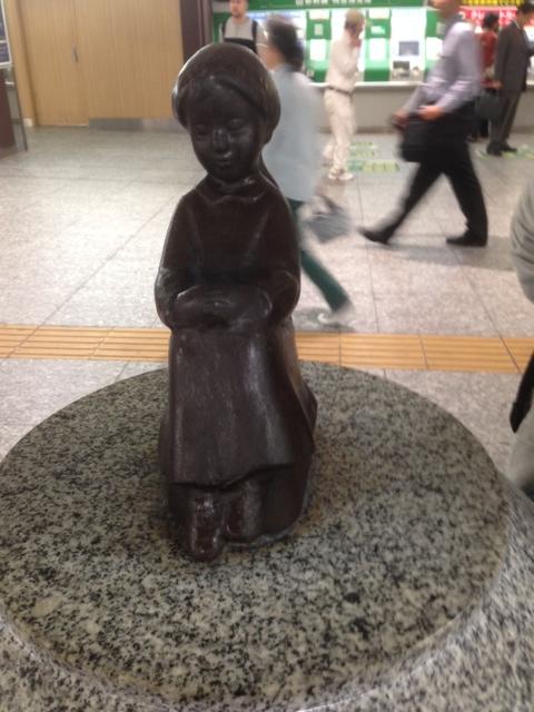 一日に40万人が利用する横浜駅ですが、この東西自由通路は最も人の行き交いが激しい場所です。そこに膝を抱えて座るこの像は、少なくとも日々数万人の姿を見ていることでしよう。改めて向かい合うと、そんな感慨が胸をよぎります。