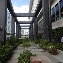 2階の通路になっているお店の前は、グリーンをたくさん配したスペースがあり、ここでお弁当を広げたり、電話をかけたりしている人がいました。ちょっと憩える場所でいいなと思います。