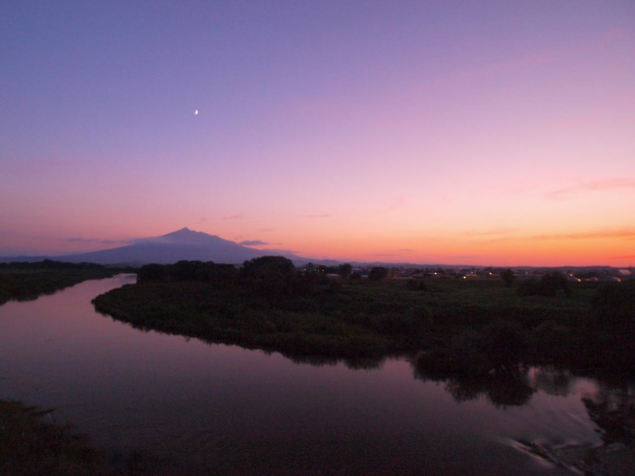 そのなかで印象に残っているのは、五能線・陸奥鶴田駅から津軽富士見湖方面へ向かう途中の青森県道153号山田鶴田線に架かる鶴寿橋から見た夕景の岩木山。
