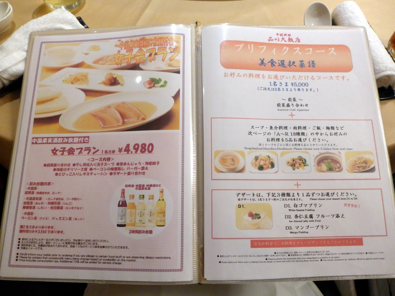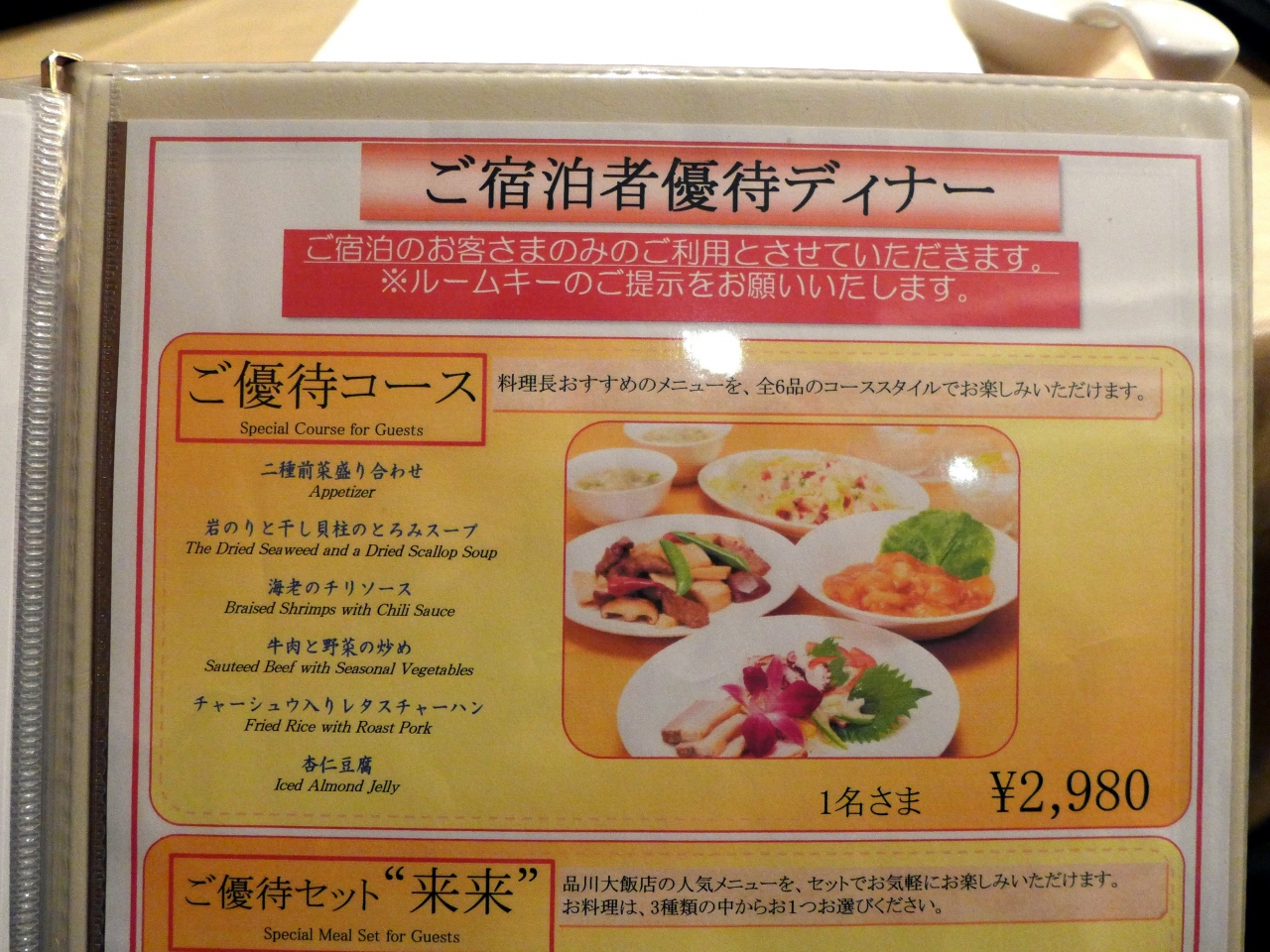 品川プリンスホテル 中国料理 品川大飯店の夕食