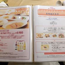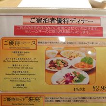 コース料理をはじめ、アラカルトメニューも豊富にそろい、宿泊者向けの優待コース(6品 ¥2,980−)もあります。