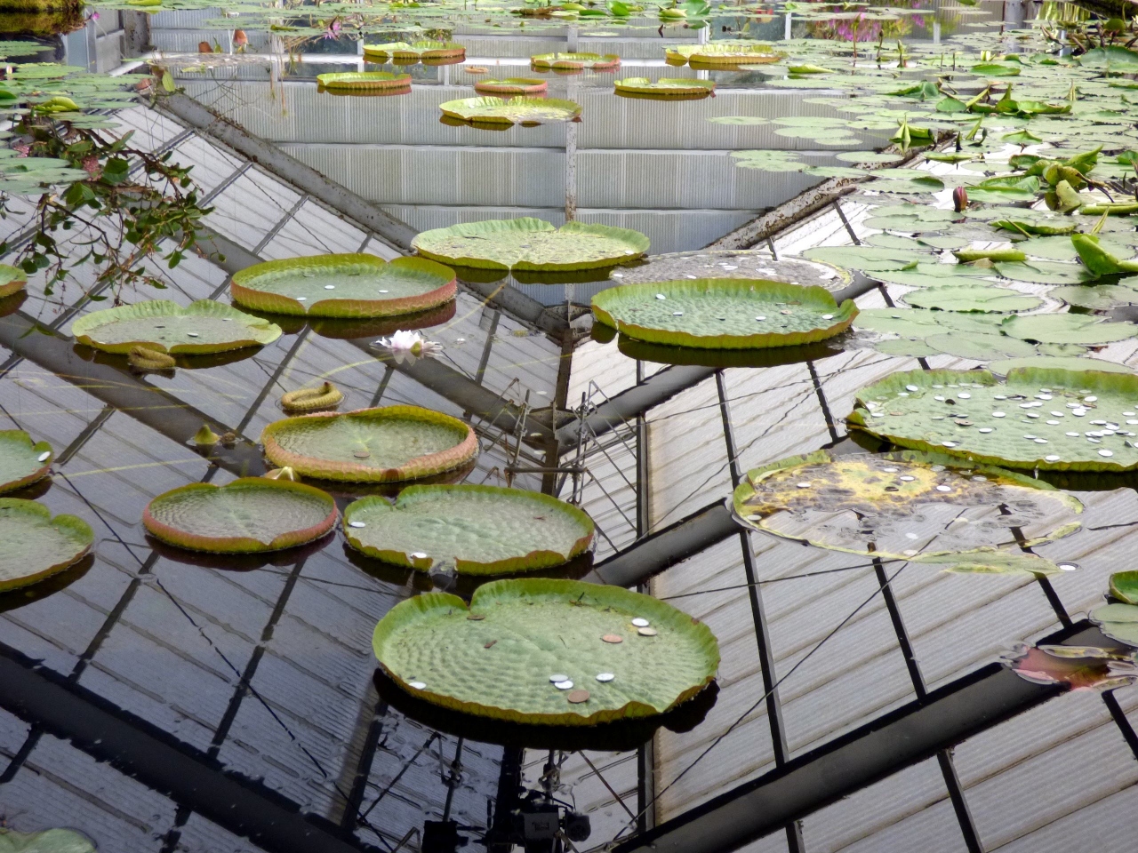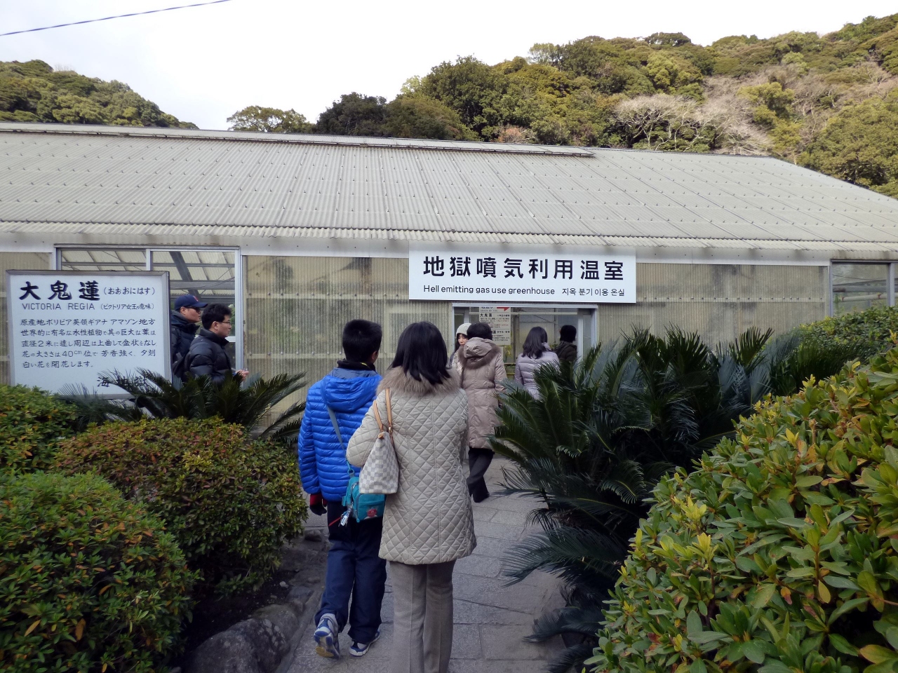 地獄噴気利用温室では温泉の熱を利用した池で大鬼蓮がみられます。