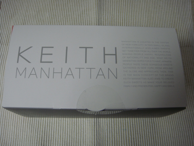 羽田空港第一ターミナル2階中央には洋菓子店が多く、おみやげを選ぶ時に苦慮します。その中でもこのキース・マンハッタンは、どこか大人の香りが漂います。今日購入したのはロールケーキ、表面はパイ生地、上にアーモンドスライスが塗されており、そのパイの内側にスポンジケーキが、中には生クリームとフルーツがサンドされていてあまり甘くはありません。価格も1300円で無難なお土産です。