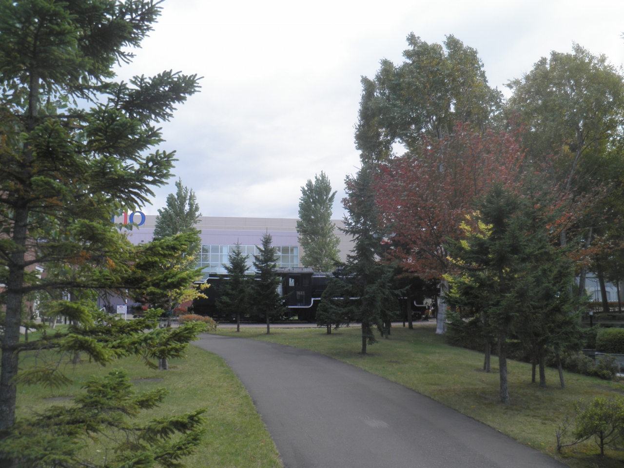 札幌のサッポロビール園とそのとなりには大型ショッピングモールのアリオ札幌があります。赤レンガの歴史ある建物の周囲には、樹木が多くよく整備されて公園のようです。ここに、蒸気機関車の9643号の車体が展示されています。10月中旬なので、周囲の樹木が紅葉し始めていてよい散策ができました。