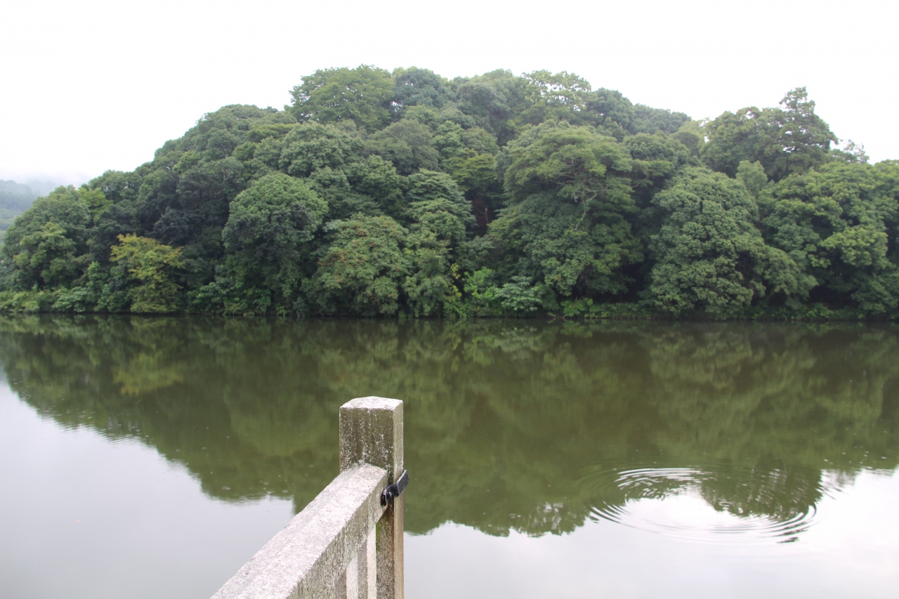 古墳は綺麗な水を湛えた濠に囲まれています。とても荘厳な感じがする古墳です。国道からも近いの場所はすぐわかると思います。