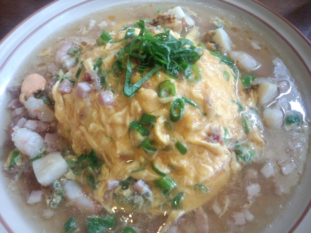結局、中華風海鮮あんかけオムライスを選択。とろとろの卵と中華あんの相性が抜群で、絶品の味でした。