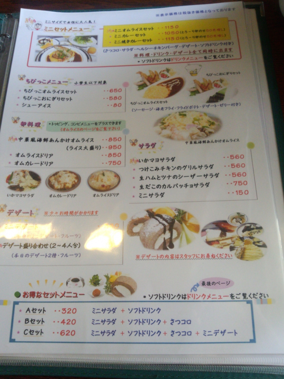 メニューが多彩であり、中華風海鮮あんかけオムライスやオムライスドリア、オムカレードリア、焼きカレーなど、どれも甲乙つけがたく決めるのに悩んでしまいます。