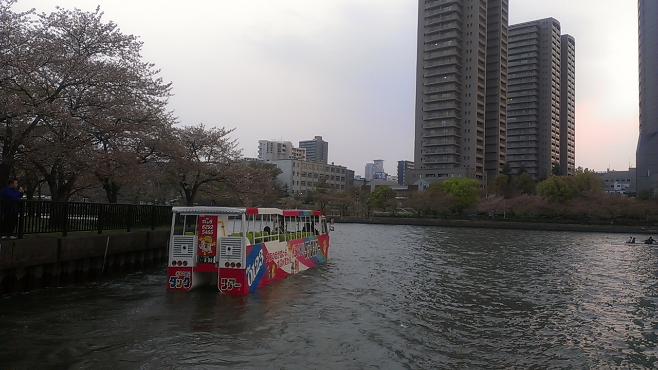 タイヤではなく、車体後部についたスクリューで航行し、「水都大阪」を満喫できます。