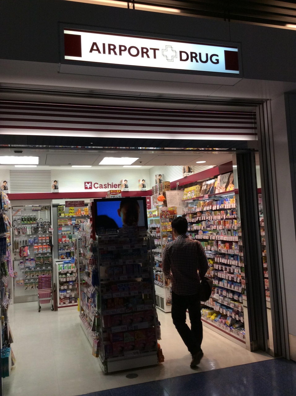 羽田空港国際線の出国検査場に入るところにあるエアポートドラッグ。こじんまりとした店舗ですが、海外で医者にかかるわけにはいかないので、念のため、痛み止めだけ購入。ポイントも割引きも無いのですが、あるのは便利です。
