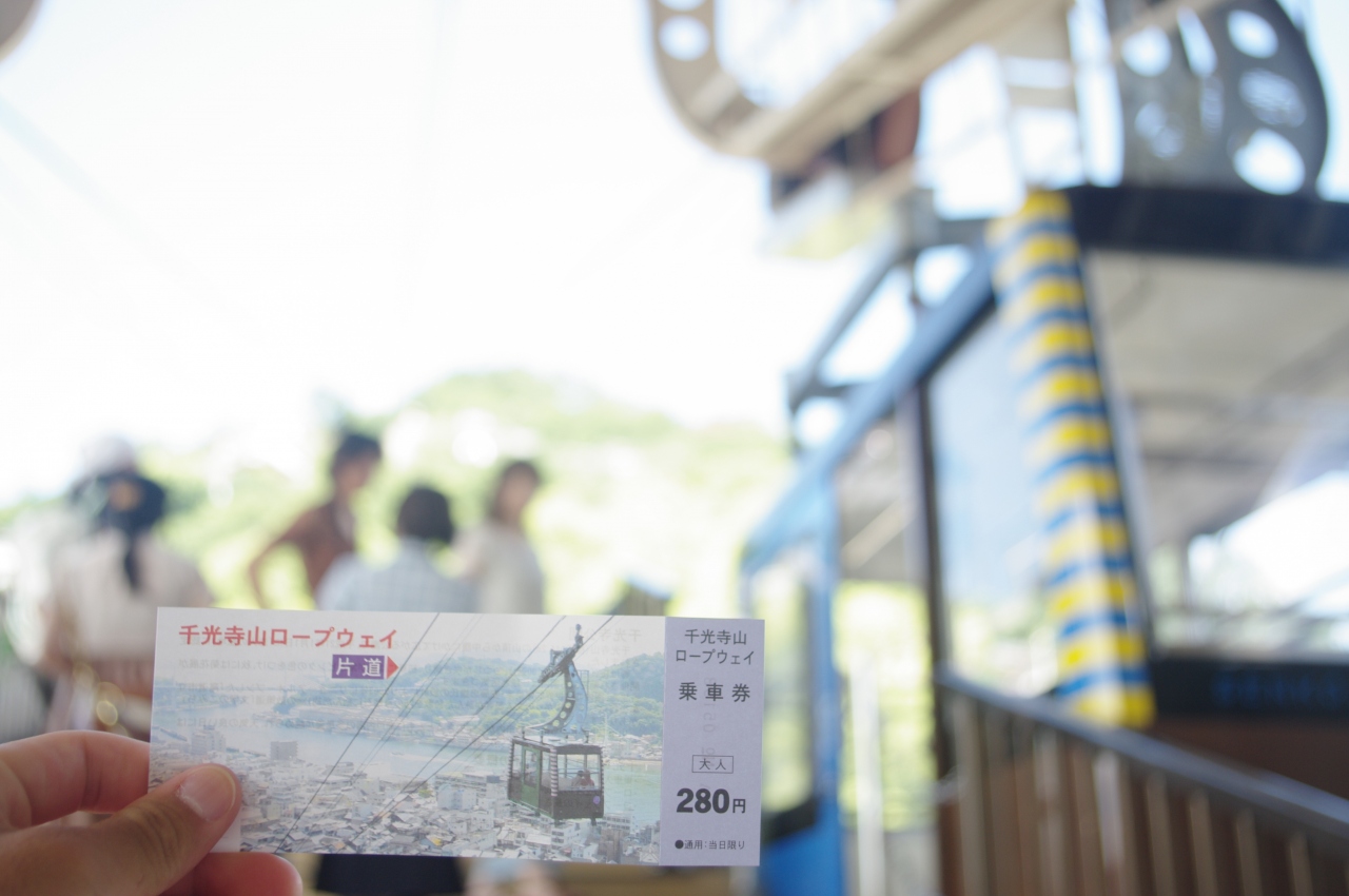 ロープウェイは少し狭め。できれば向島側(下側)が見える方に席を取ると、景色が綺麗にみれます。乗車は数分。