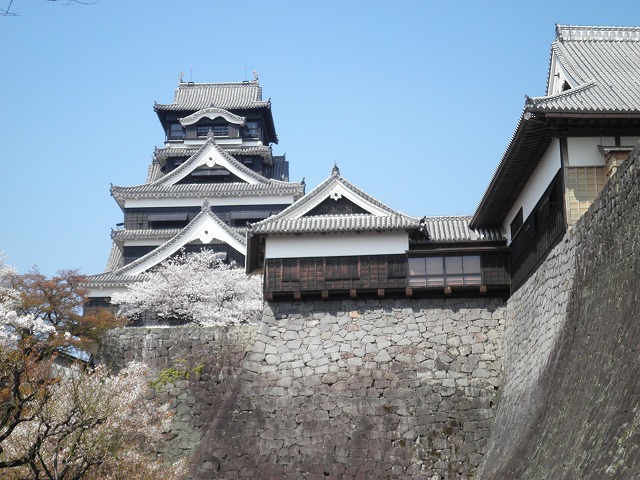 明治維新後の西南戦争で、天守を初めとして多くの建物が焼失しましたが、宇土櫓は現存で、五階建てで他の中小規模の現存天守を凌ぐ大きさです。お城が好きな方は見逃せません。