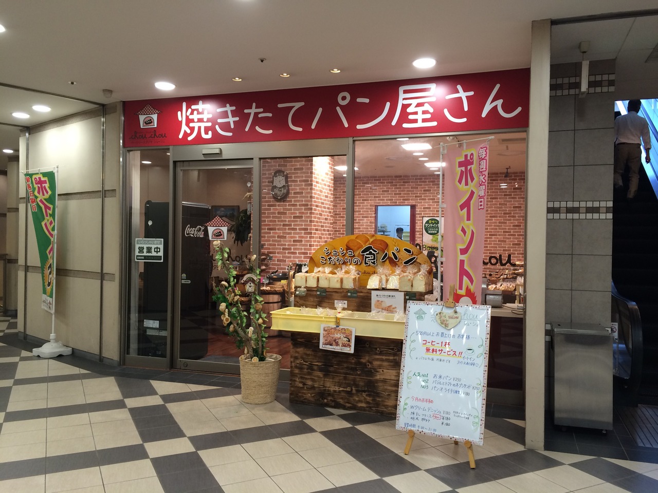 500円以上(定価のパンのみ)パンを購入するとコーヒー1杯無料サービスがあります。