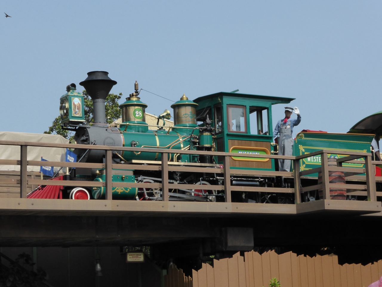ウエスタンリバー鉄道は蒸気機関車です。クリッターカントリーとウエスタンランドを1周します。マークトウェインと間近に走ることもあり、乗客同士で手を振りあったりして楽しいです。極まれに停車位置が悪くてバックする事もあります(笑)お気に入りの車両に乗りたいときはキャストにお願いをすると車両が来るまで待機させてくれます。