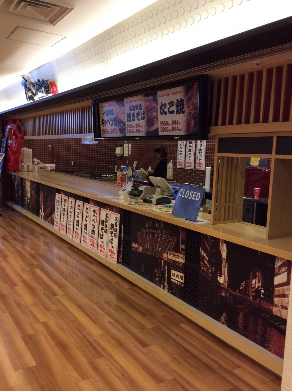 新千歳空港のフードコートにある大阪タコ焼きの店、たこ物語。レストランフロアー全体が北海道食ばかりのなか、フードコートだけはいろいろなお店が入っていて、なかでもここは、全面に大阪道頓堀の写真を張ったりして本格的に関西風。閉店間際に、たこ焼きをテイクアウト。ラウンジで無料のビールで。美味しい。