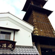 蔵造りの町並が続く通りから横丁に入った所にあります。周囲にもお店がたくさん並んでいて休日は混み合っていました。記念撮影のスポットですね。