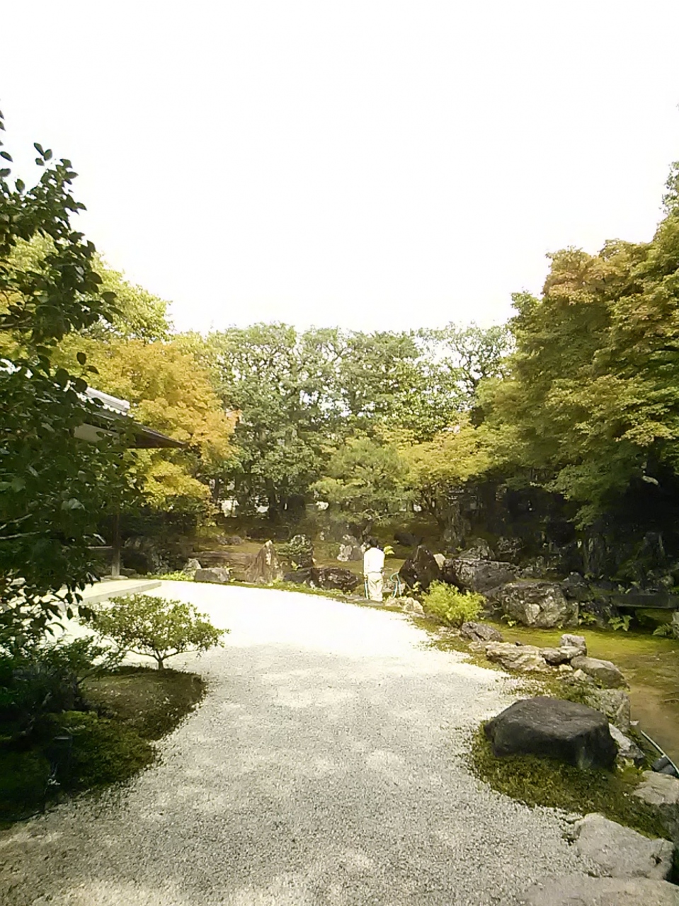 いかにも池に石橋が渡してあるような造りですが、池に水は無く、不思議な感じ。枯池と呼ぶそうで桃山時代の典型的な枯山水だそうです。