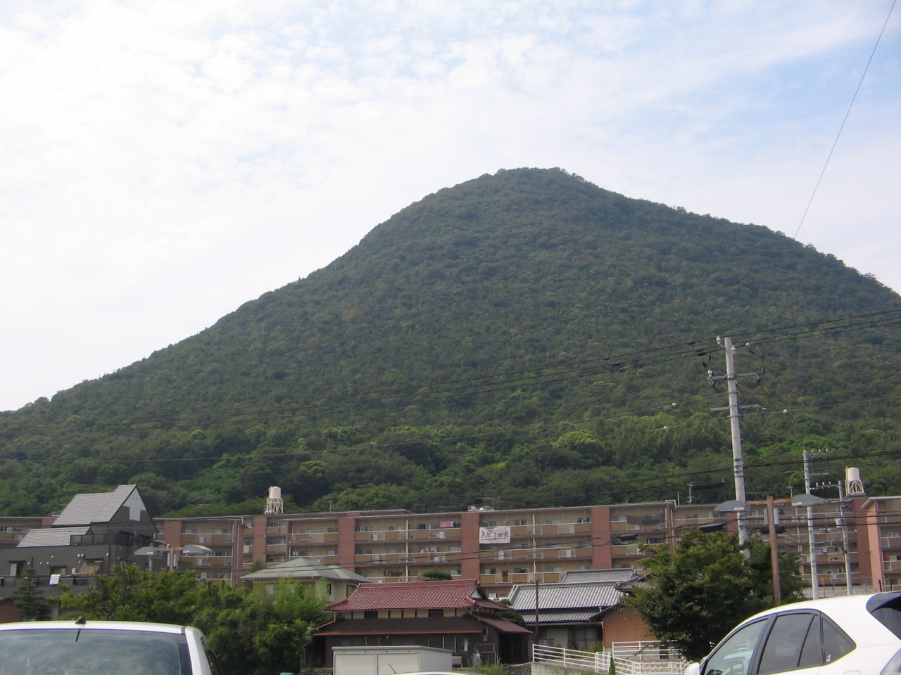 形状は代表的なビュート型のおにぎり型の山で、香川には結構多いタイプです。他に連なる山もなく単独の山のうえに田園地帯の真ん中と言うこともあり500mもない高さの割には東西南北、海側からも山側からもどの位置からも目にすることができまさにシンボリックな山だといえます。私たち県民はこの山がどの位置に見えるかで自分の位置を確認することもできるほどです。
