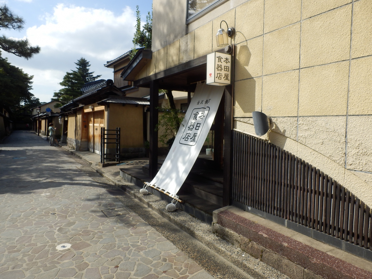 金沢市内を運行しているバスで香林坊下車、日銀金沢支店側から西へ曲がると10分ほどで加賀藩時代の上級、中級武士が住んでいた一帯が武家屋敷跡として整備されていた、90度の曲がり角がある細道にこの店があった,土色の土塀が両側にあり歴史を感じさせられたちょっと場所がら違和感があるが覗いてみた、高級品ばかりかとおもったが庶民も買えそうな品が多い絵柄が温和で独創的、