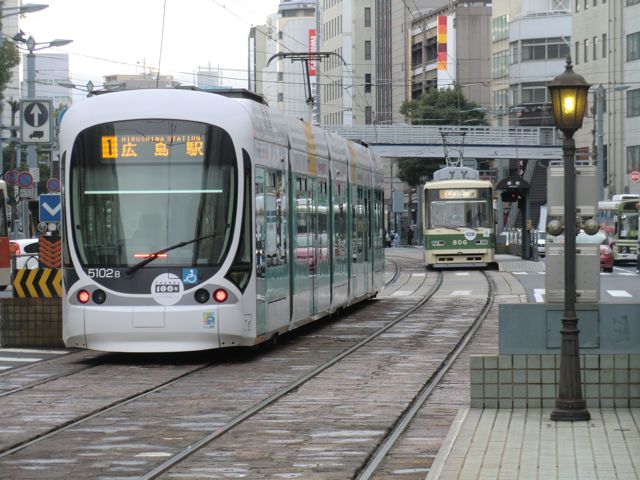 日本各地の廃止になった路面電車を集めて雑多な電車が走るのが魅力だったのですが、新型の電車も増え、宮島行きは半分くらいが低床型の新車のようでした。ドイツ製の電車もあります。最近の新車は日本製のようです。