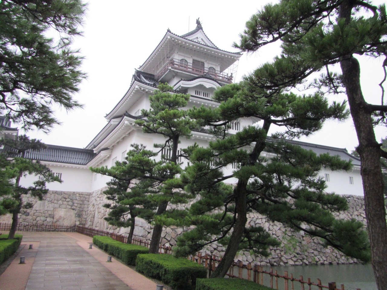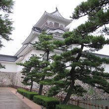 内堀の南側から橋を渡ると、石垣の上にある天守閣に見えるのは資料館。
