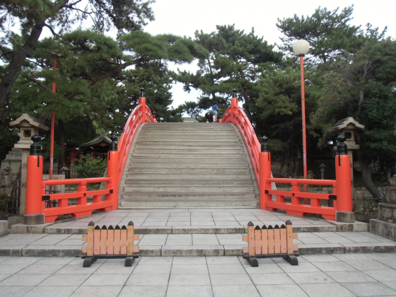 南海本線住吉大社駅下車、徒歩約3分と近いです(ホールから見えています)。「日本三大住吉」の一社で、大阪では「すみよしさん」と親しまれている神社です。鳥居をくぐると急な勾配の太鼓橋があります。境内内には4つの本宮があります。