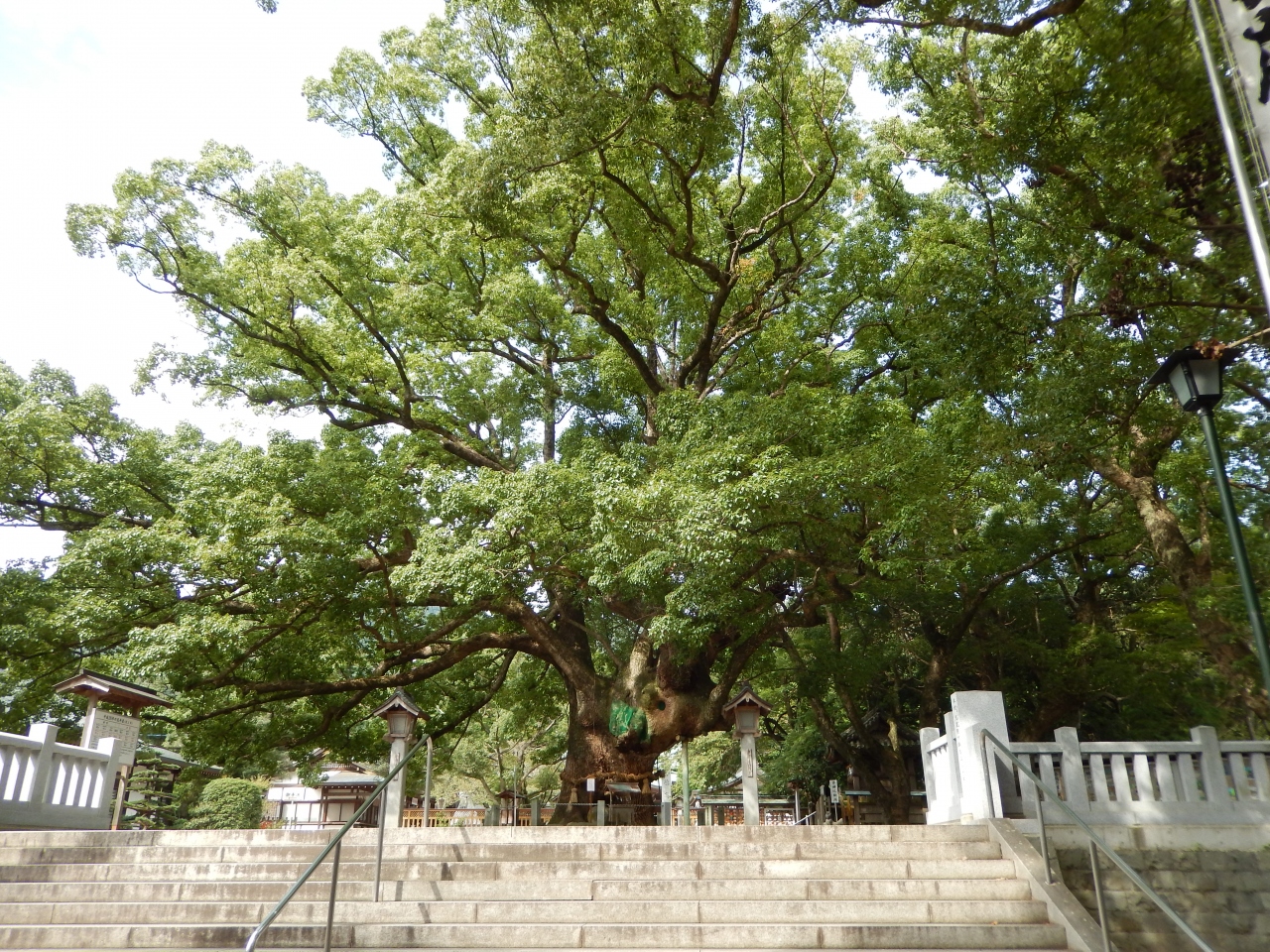 パワースポットとして有名な大きな楠が出迎えてくれます。