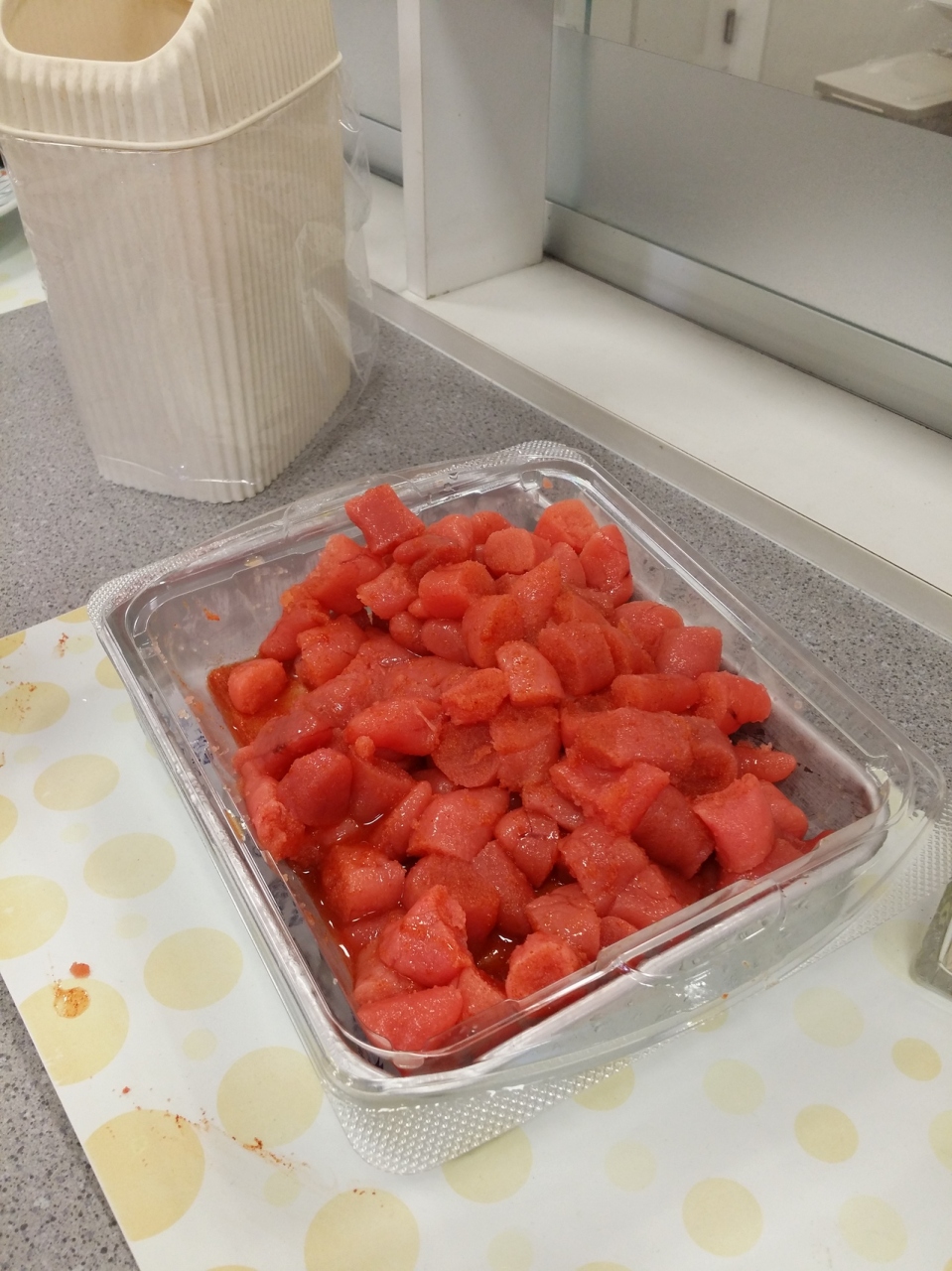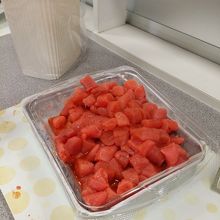 試食は、明太子のぶつ切りと軍艦巻きが。もちろんタダです。