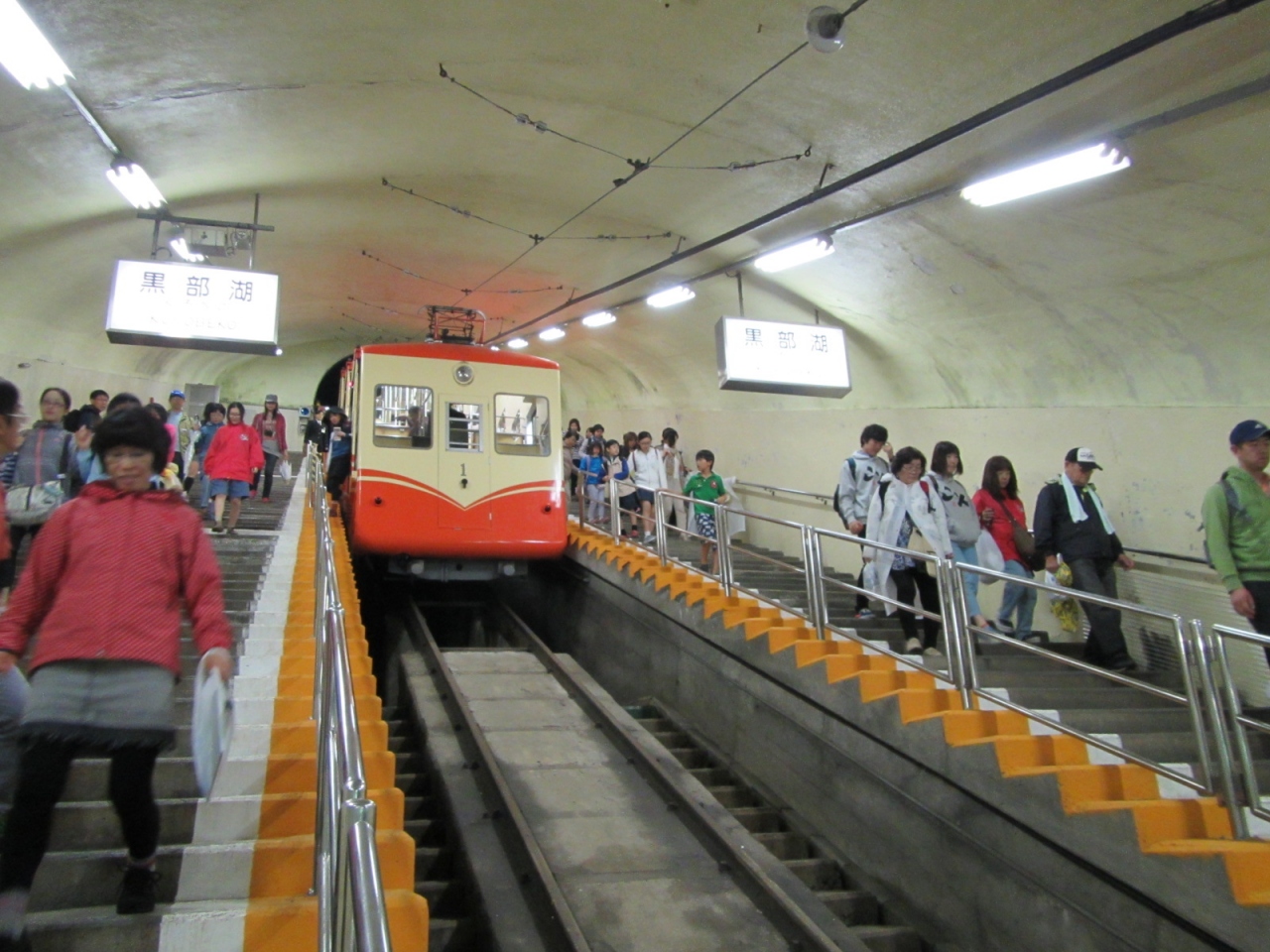 黒部湖までトンネルの中を降りて行く。乗車時間はわずか5分間。