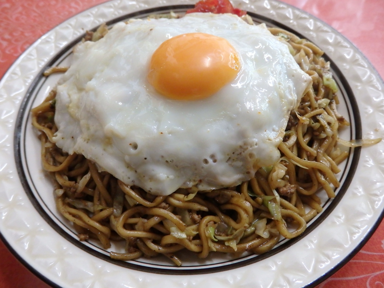 出てきた焼きそばは、たまごで焼きそばが隠れるんじゃないかというぐらいのビジュアルでしたが、ソースがくどくなくとても美味しかったです。