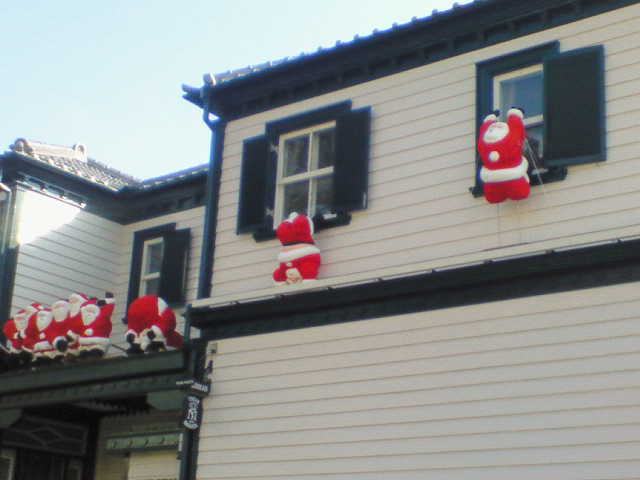 また、この日はクリスマスが近かったせいか、窓枠や屋根でサンタが色々なポーズで出迎えてくれてるのが楽しげでした。