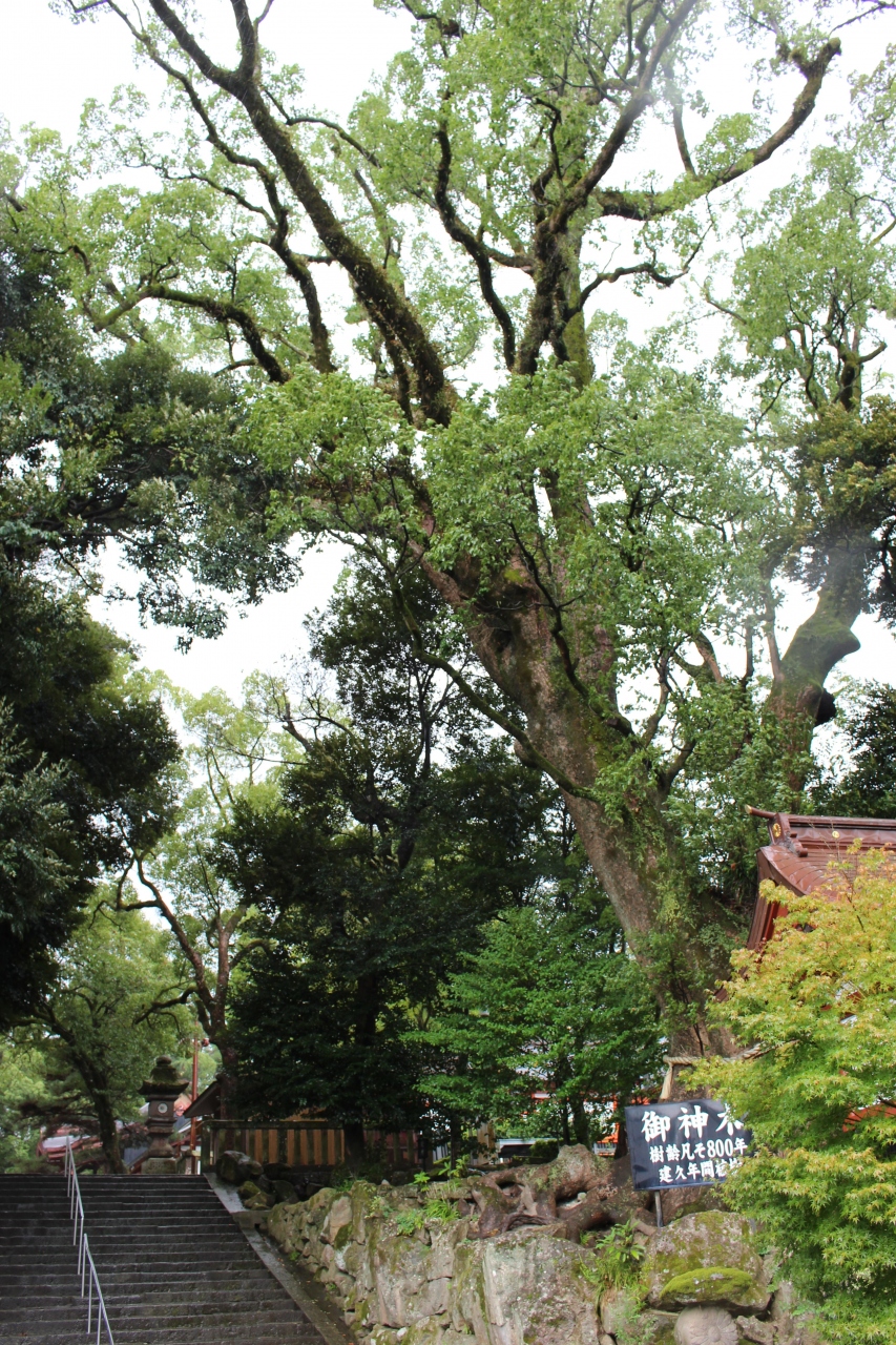 社務所のすぐ近くに、樹齢800年を超える御神木が