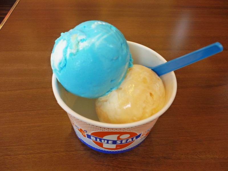 パレットくもじの1階にあるブルーシールの直営店。テイクアウトはもちろん涼しい店内で座って食べることも可能です。買い物ついでの人や学校帰りの高校生などで賑わっていました。ゆいレールの県庁前駅からすぐなので、場所柄、観光客が利用するにも便利です。ゆいレールのフリー乗車券(1日券または2日券)を提示すると、シングルの価格でダブルにすることができてお得です。